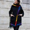 Wrap yourself in creativity with this unique, colorful, wool and cashmere blend coat. Add structure to its relaxed silhouette by cinching it at the waist with its accompanying self-tie belt. It’s completed with two large patch pockets, perfect for slipping your hands or phone into. It’s one of those pieces that wake you up on gloomy days but still keep you warm and cozy.